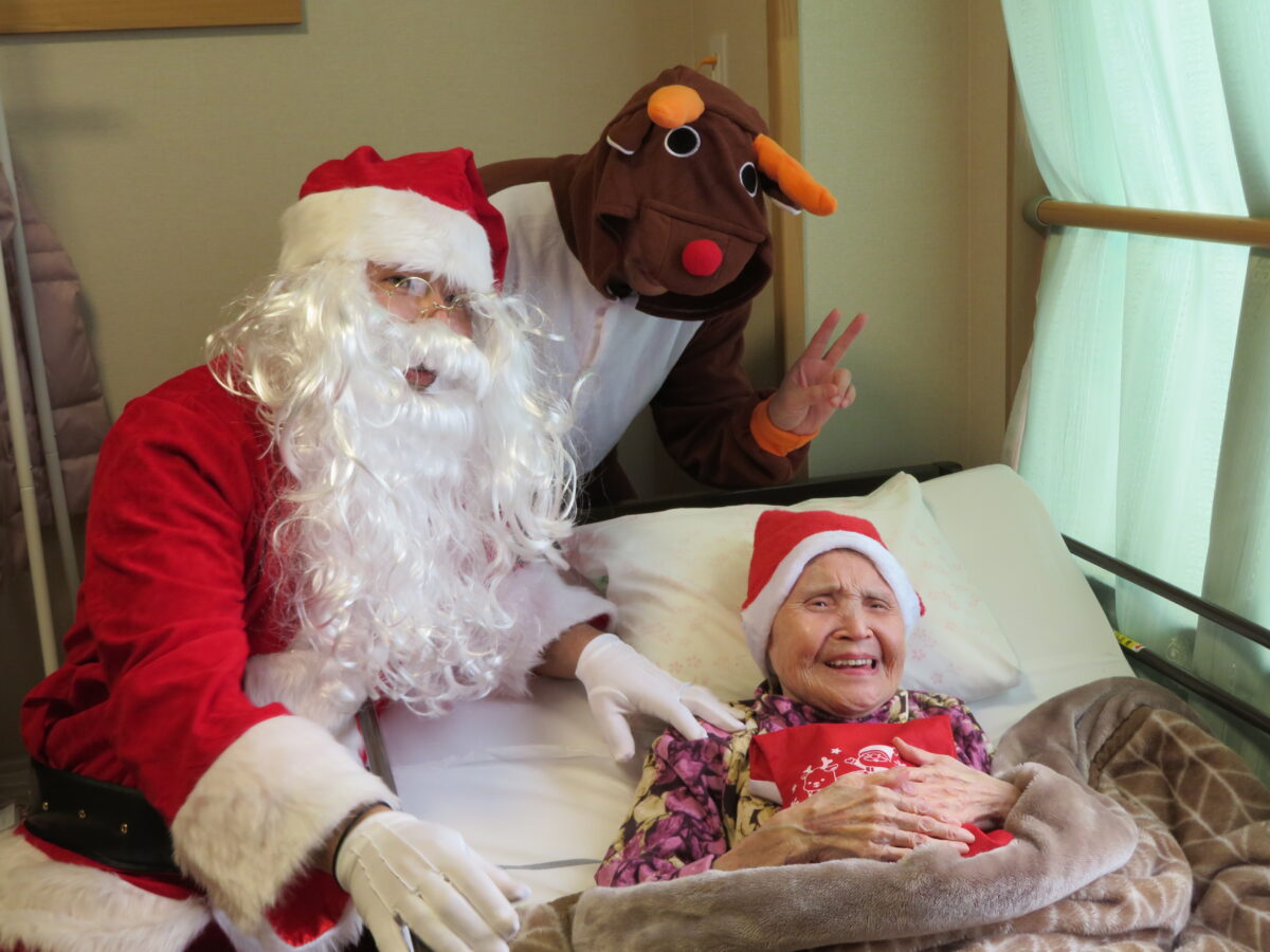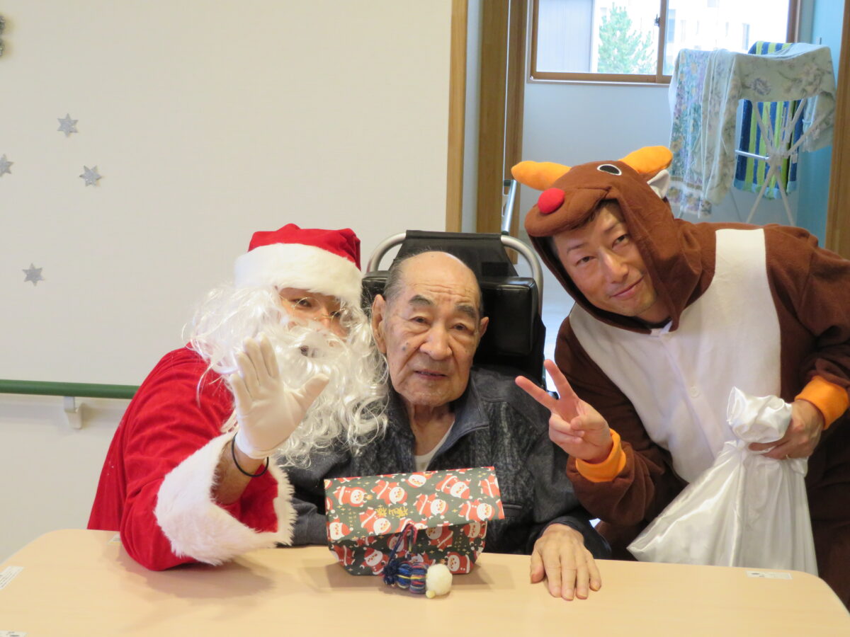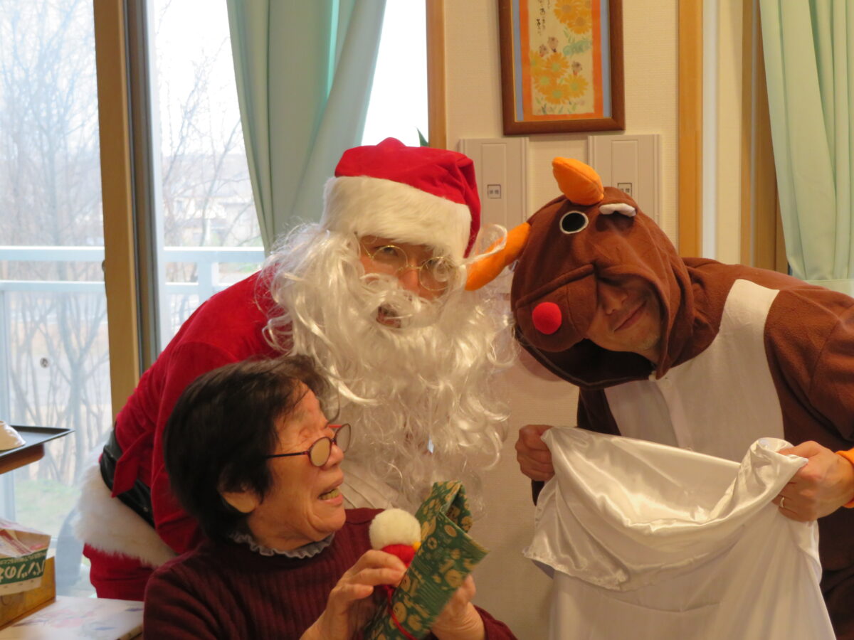 サンタクロースとトナカイが各ユニットを回り、入居者の皆さま一人ひとりにプレゼントを届けてくれました🎁